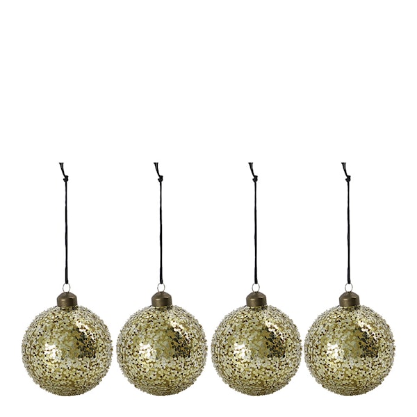 Den klassiska guldfärgen och en yta med struktur möts i denna förpackning med 4 julkulor från House Doctor