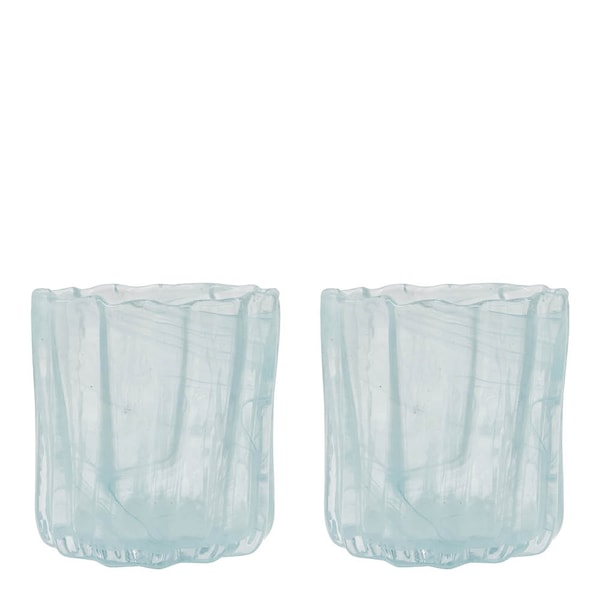 House Doctor Curl ljuslykta 10x11,5 cm i blått glas är ett tvåpack med handgjorda lyktor. Den kurviga, räfflade designen och det ljusblå marmorerade glaset ger ett rogivande sken och en naturlig elegans. Ett perfekt komplement till både vardagsrummet och middagsbordet.