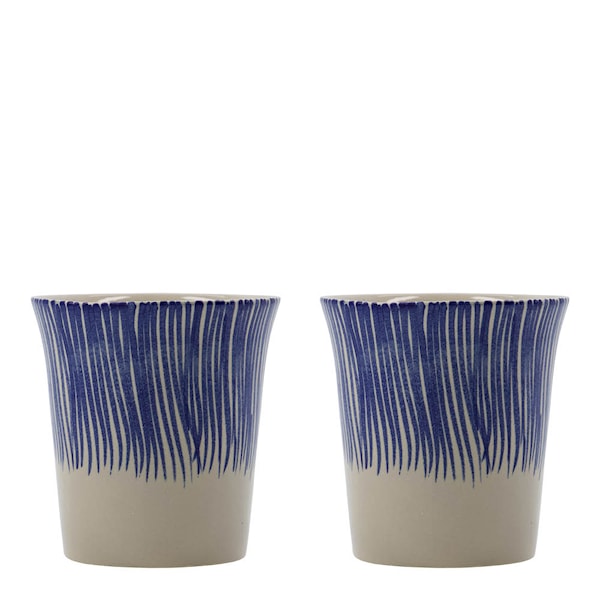 Diva muggar utan öra från House Doctor (25 cl) i blått kombinerar hantverk med funktion. Det handmålade, blåmönstrade muggparet skapar ett lekfullt och unikt uttryck – perfekt för att lyfta morgonkaffet eller eftermiddagsteen.