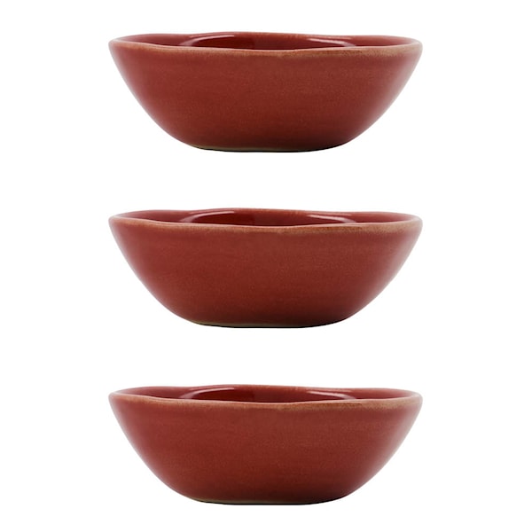 Diva miniskålar från House Doctor (4 cl) i rödbrun keramik ger en mjuk och inbjudande känsla till bordet. Setet innehåller tre handgjorda skålar, där varje del har sin egen form och uttryck – perfekt när du vill duka med personlighet.
