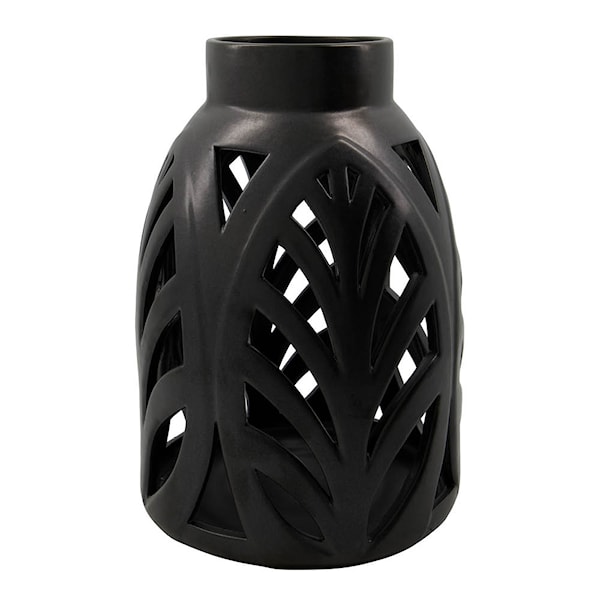House Doctor Elm lykta 22x32 cm är en stämningsfull ljuslykta i svart stengods. Med ett intrikat, utskuret mönster inspirerat av naturen sprider den ett vackert skuggspel när ett ljus placeras inuti. Dess tidlösa design och matta finish gör den lätt att placera i såväl moderna som rustika miljöer.