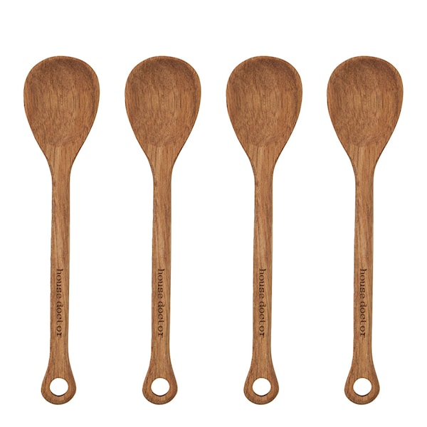 Detta set med fyra serveringsskedar i naturlig akacia ger en rustik känsla till varje kök