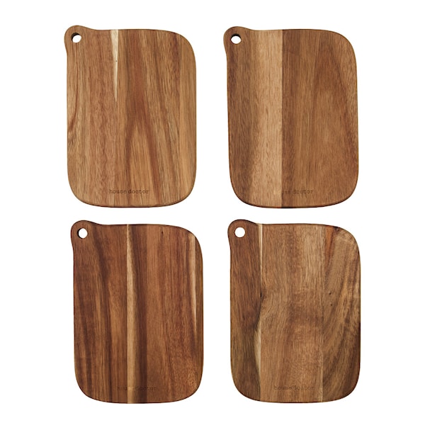 Eya skärbräda från House Doctor är ett set med fyra brädor gjorda av vackert akaciaträ som tillför både stil och funktionalitet till ditt kök. De naturliga färgvariationerna i träet ger varje bräda en unik och rustik känsla.