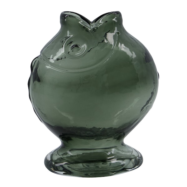 Fish vas från House Doctor är en munblåst glasvas med en lekfull fiskform som förenar konstnärligt uttryck med modern elegans. Den handgjorda designen gör varje vas unik, med naturliga variationer som tillför karaktär och djup.
