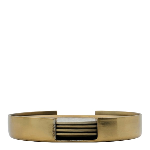 Låt Hammer glasunderlägg från House Doctor bli den lilla detaljen som förhöjer hela dukningen. Setet består av fyra runda underlägg i hamrad aluminium med en elegant guldfinish, samt en matchande hållare för praktisk och dekorativ förvaring.