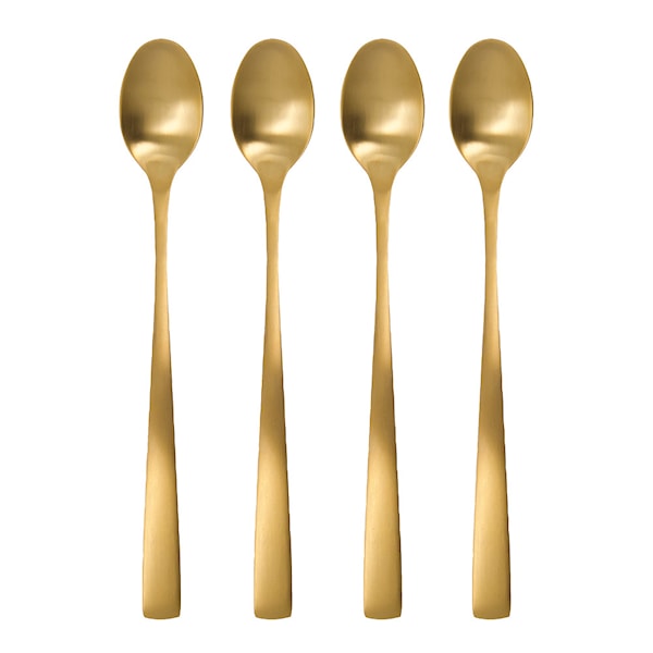 Golden lång sked från House Doctor är ett stilrent set med fyra eleganta skedar som lyfter dukningen. Med sin slanka form och extra längd på 18,2 cm passar de perfekt för höga glas, desserter eller små serveringar.