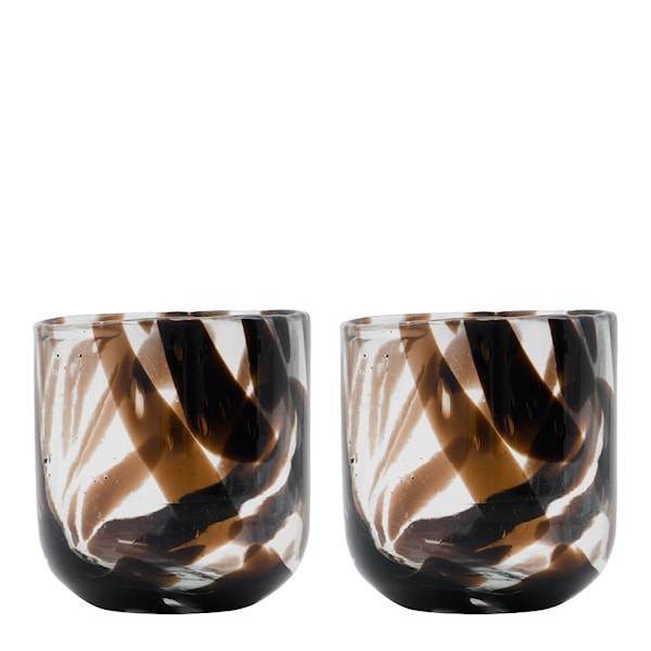 Tillverkad av transparent glas med ett mörkbrunt mönster