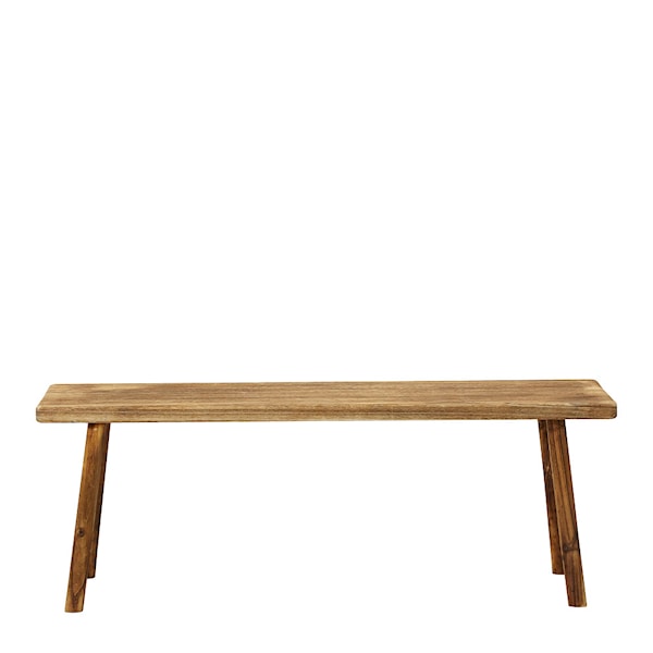Träet är obehandlat och kommer med tiden att utveckla naturliga märken och fläckar, vilket ger bänken karaktär och en unik patina. Nadi-bänken finns även i en kortare version för mer flexibla inredningsmöjligheter.