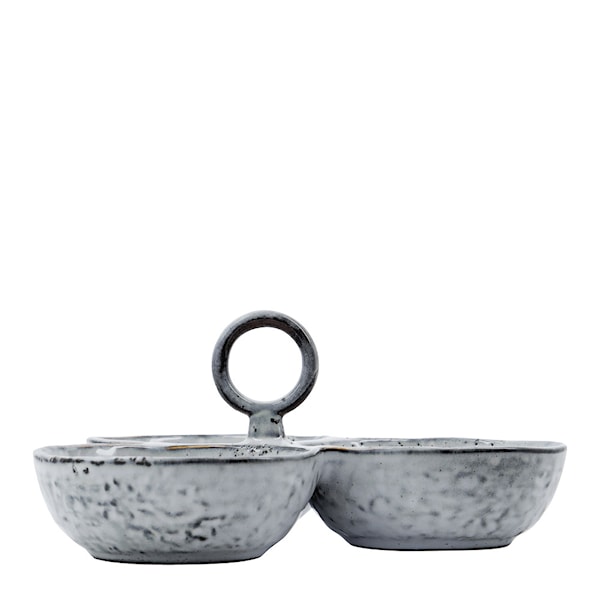 Den rustika stilen ger en hantverkskänsla, perfekt för både vardagsbruk och speciella tillfällen. Med sina tre sammankopplade skålar och ett centralt handtag är den både praktisk och elegant och kommer att lyfta varje servering med sin tidlösa design.