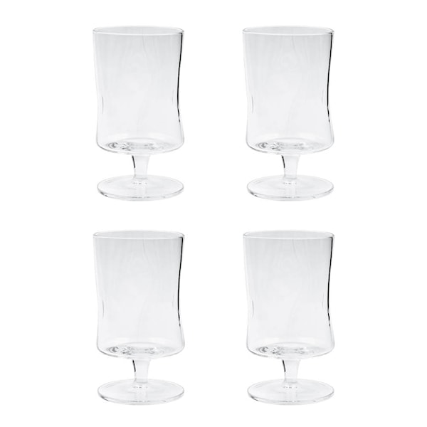 House Doctor Sand vinglas 35 cl, 4-pack, har ett karaktärsfullt uttryck med sin geometriska struktur och korta fot. Glasen är tillverkade i munblåst glas, vilket ger varje glas sin egen unika form och yta. Det perfekta valet för dig som vill ha något mer än ett klassiskt vinglas.