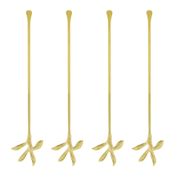 House Doctor Serve drinkpinnar 19 cm, 4-pack, är ett elegant tillägg till hemmabaren. Med varm antikguldfinish och vackra skulpturala toppar blir dessa drinkpinnar ett dekorativt inslag som både är funktionellt och stilrent. Perfekta för att röra i drinken och lyfta serveringen vid festliga tillfällen.