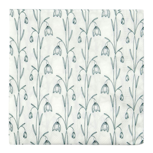 House Doctor Snowdrop servett 33x33 cm ger dukningen ett lätt och vårinspirerat uttryck. Motivet av snödroppar i mjuka gröna och vita nyanser är perfekt för att skapa en naturlig och lugn känsla, oavsett om det är vardag eller påsk.