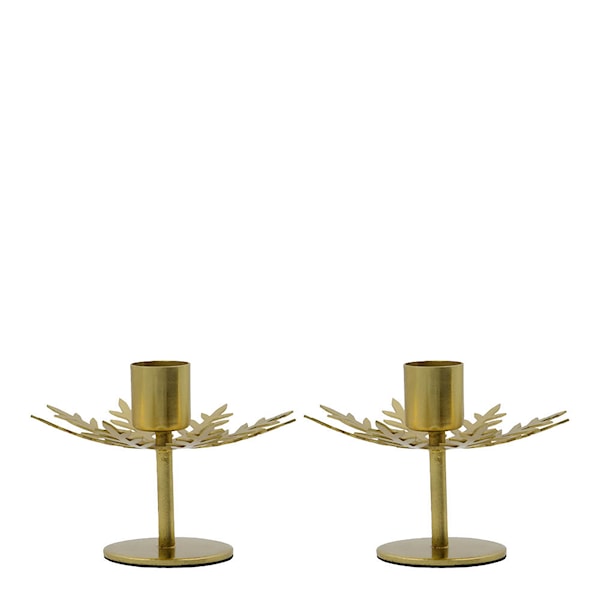 House Doctor Snowflake ljusstake i järn 2 st antik mässing är ett set med två handgjorda ljusstakar med ett dekorativt snöflinginspirerat uttryck. Den öppna formen skapar ett grafiskt mönster som framhäver ljuset, medan ytan i antik mässing ger en varm och klassisk känsla.