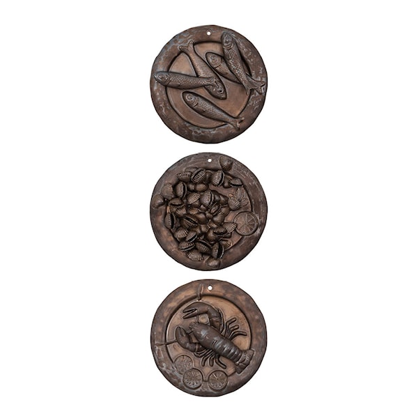 Plate väggkonst från House Doctor är ett handgjort keramikset som består av tre tallrikar med marina reliefer – fisk, hummer och musslor – i elegant brun metallicglasyr. En kombination av lekfullhet och exklusiv design gör dem till ett iögonfallande inslag på väggen.