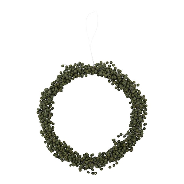 House Doctor Winter krans 23 cm grön är en handgjord krans tillverkad av mangoträpärlor med grön yta. Pärlorna kombineras med mässingsdetaljer och sitter runt en järnram som ger stabil form.