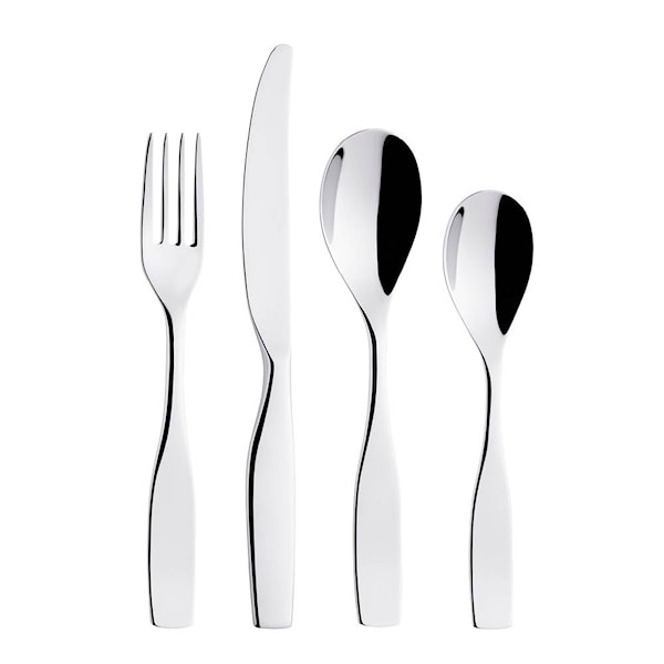 Besticket är tillverkat i högkvalitativt 18/10 rostfritt stål, vilket gör det slitstarkt, bekvämt att hålla i och behagligt att äta med. Setet innehåller 16 delar och rymmer matbestick och kaffeskedar för fyra personer – en stilren helhetslösning för den designmedvetna.