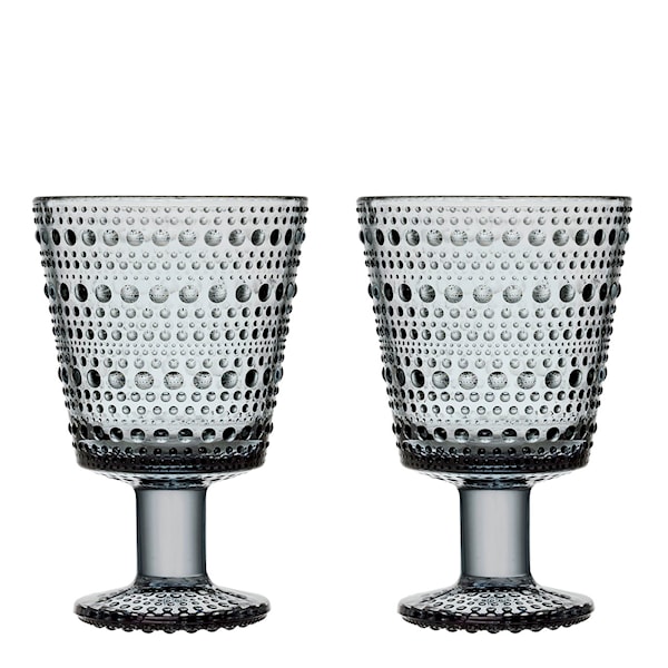 Iittala Kastehelmi glas 26 cl 2-pack är ett mångsidigt glas på fot med en tydlig designidentitet. Oiva Toikkas karakteristiska Kastehelmi-struktur ger glaset både textur och lyster, och framhäver form och innehåll med balans och elegans.