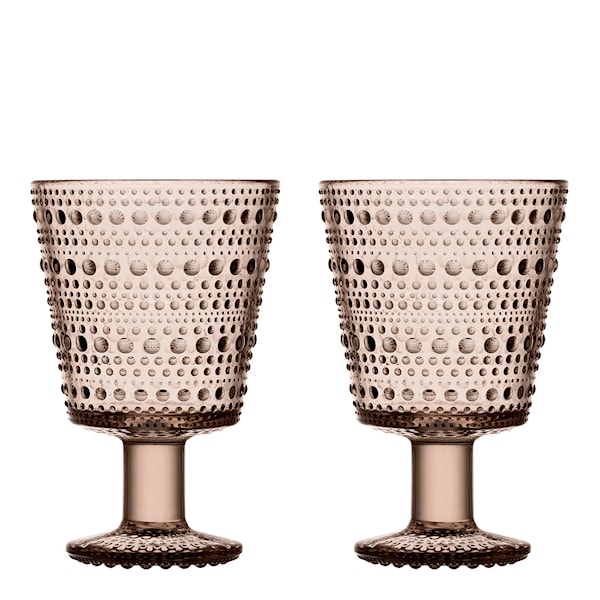 Vackra dricksglas på fot med droppformat mönster ur serien Kastehelmi, designad av Oiva Toikka 1964. Det passar för alla kalla drycker och är idealiskt vid alla tillfällen både inne och utomhus. Glasen finns i flera färger så du kan skapa dina egna favoritkombinationer ur Kastehelmi-serien. Ordet Kastehelmi betyder daggdroppe och är inspirerat av de daggdroppar som man kan se glittra som pärlband på grässtrån medan sommarsolen stiger upp över horisonten. Säljs i 2-pack.