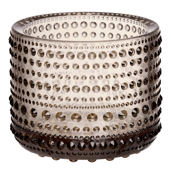 Iittala Kastehelmi ljuslykta 6,4 cm är en designikon skapad av Oiva Toikka år 1964, vars namn betyder ”daggdroppe” på svenska. Toikka hämtade sin inspiration från den finska naturen – från morgondaggens små, glittrande pärlor som samlas på grässtrån i gryningen. Det unika mönstret med sina små glaspärlor fångar ljuset på ett magiskt sätt och skapar ett varmt och levande sken när lyktan tänds.