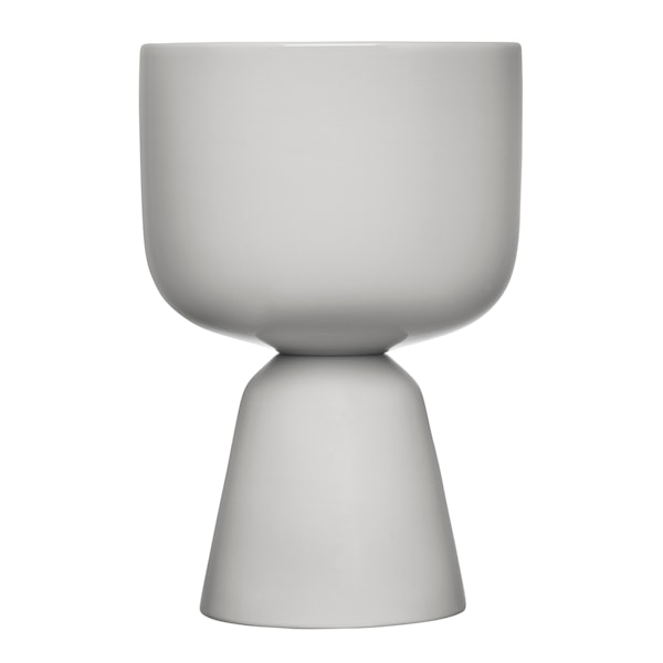 Nappula blomkruka 23x15,5 cm ljusgrå från Iittala är en elegant keramikkruka designad av Matti Klenell, inspirerad av unikt formade bordsben. Denna ljusgrå kruka framhäver växternas och blommornas skönhet på ett subtilt sätt. Med sin stilrena och moderna design ger den ny inspiration till hur du arrangerar gröna växter i ditt hem. Nappula-krukan är vacker både som ensam dekoration eller som en del av en grupp, vilket gör den till en utmärkt present för alla växtälskare.