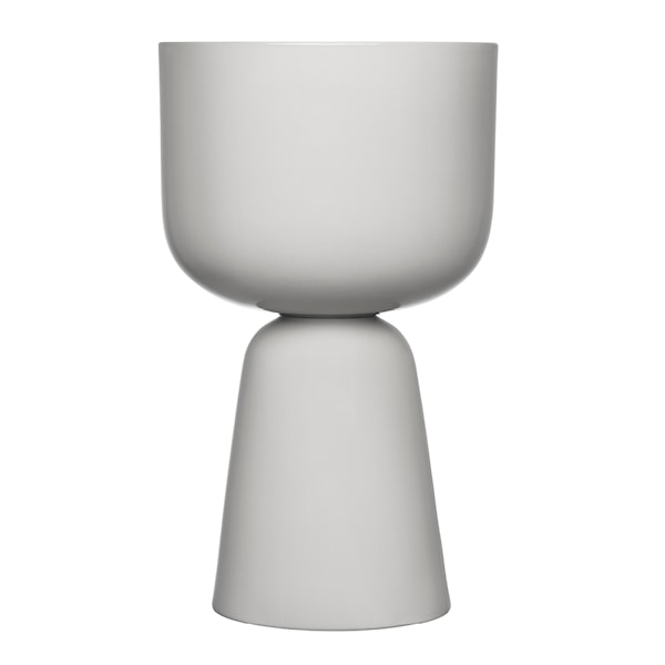 Nappula blomkruka 26x15,5 cm ljusgrå från Iittala är en elegant keramikkruka designad av Matti Klenell, inspirerad av unikt formade bordsben. Denna ljusgrå kruka framhäver växternas och blommornas skönhet på ett subtilt sätt. Med sin stilrena och moderna design ger den ny inspiration till hur du arrangerar gröna växter i ditt hem. Nappula-krukan är vacker både som ensam dekoration eller som en del av en grupp, vilket gör den till en utmärkt present för alla växtälskare.