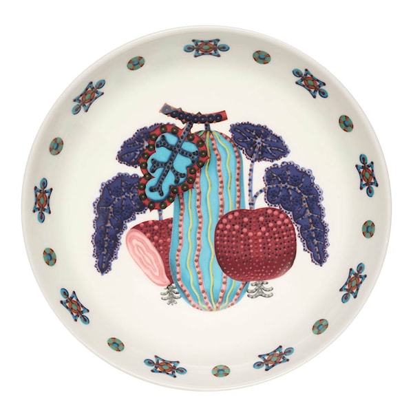 Dekorativ dyp tallerken i Taika‑stil – frukt/grønnsaksmønster