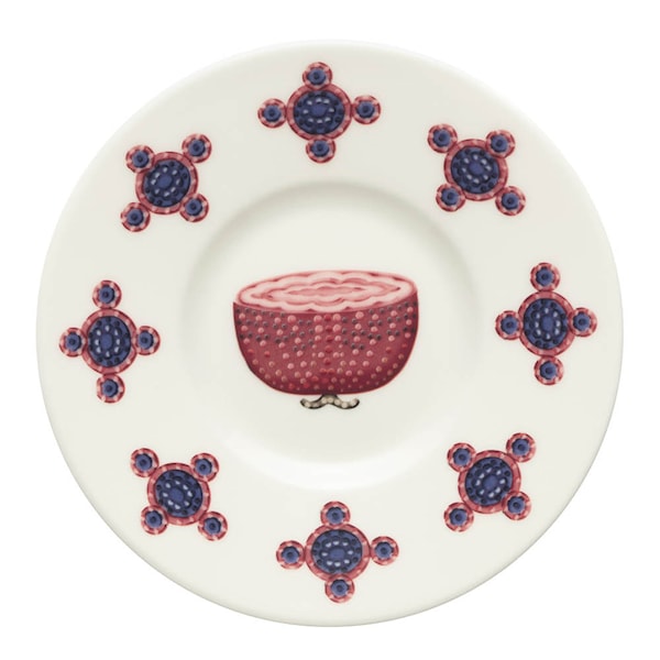 Detta inspirerande fat, skapat av konstnären Klaus Haapaniemi, för tankarna till bildkonstens stilleben. Mönstret på fatet är förtrollande med sina livfulla illustrationer av olika frukter och grönsaker, vilket ger varje servering en unik touch och skapar en konstnärlig upplevelse.