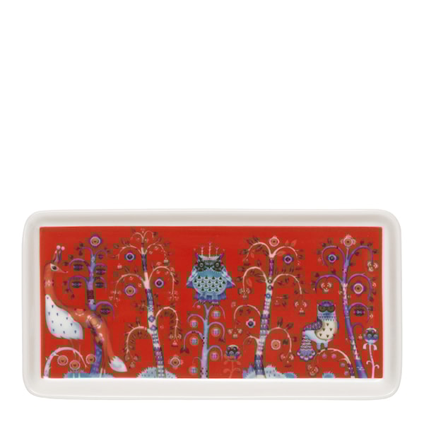 Taika tallrik rektangel 12x24 cm från Iittala är både en praktisk serveringsdel och ett vackert prydnadsföremål. Tallriken förenar Klaus Haapaniemis fascinerande illustrationer med Heikki Orvolas avskalade former, vilket skapar en unik och iögonfallande design. Den mångsidiga tallriken kan också användas som ett elegant förvaringsföremål för små skatter. Med sin kombination av funktion och estetik är denna tallrik en utmärkt presentidé för alla som uppskattar vacker och användbar design.