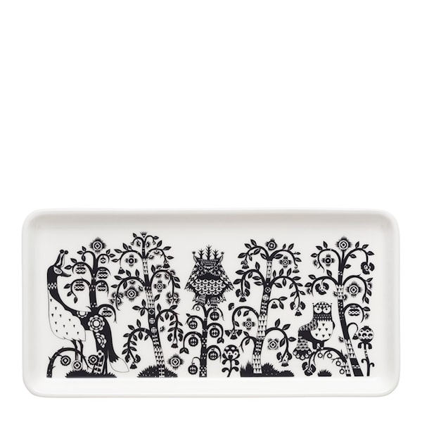 Taika tallrik rektangel 12x24 cm från Iittala är både en praktisk serveringsdel och ett vackert prydnadsföremål. Tallriken förenar Klaus Haapaniemis fascinerande illustrationer med Heikki Orvolas avskalade former, vilket skapar en unik och iögonfallande design. Den mångsidiga tallriken kan också användas som ett elegant förvaringsföremål för små skatter. Med sin kombination av funktion och estetik är denna tallrik en utmärkt presentidé för alla som uppskattar vacker och användbar design.