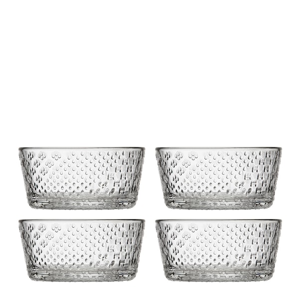 Det unika Tundra-mönstret består av flera mindre distinkta mönster. Tundraglas tillverkas i Finland på Iittala glasbruk. Förpackningen innehåller fyra skålar.
