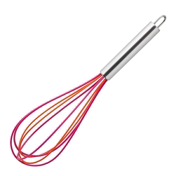 Iloleipuris ballongvisp i stål och silikon är ett praktiskt och färgglatt köksredskap i rosa och pigg orange. Med sin silikonyta slipper du oroa dig för repor i dina bakskålar eller kastruller, vilket gör den idealisk för både matlagning och bakning. Vispen tål temperaturer upp till 220 grader, så du kan tryggt använda den för olika varma ingredienser. Dessutom är den lätt att rengöra, eftersom den tål maskindisk. Med sin längd på 29 cm ger den ett bra grepp och gör det enkelt att vispa smeter och såser effektivt.
