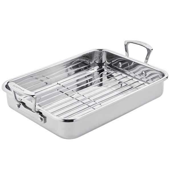 Impact ugnsform med galler från Scanpan, tillverkad av högkvalitativt rostfritt stål. Fungerar på alla värmekällor inklusive induktion. Utmärkt till både gratänger och grönsaker samt när du bakar bröd eller bullar. Varm luft kommer in under gallret och tillagar råvarorna på ett jämnt sätt. Kommer bli din absoluta favorit i köket!