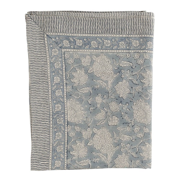 Indian Rose linneduk 170x270 cm från Chamois ger varje dukning en harmonisk och stilfull inramning. Duken är tillverkad av 100% linne, ett material som kombinerar naturlig känsla med hög slitstyrka. Det dekorativa mönstret är handtryckt med traditionell indisk blocktrycksteknik, vilket gör varje duk unik och full av hantverkskänsla.