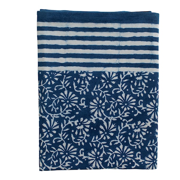 Indigo bordsduk från svenska Chamois är en vacker bomullsduk i ett härligt mönster. Handtryckt duk färgad med indigofärg. Indigo är ett naturligt pigment som ger en distinkt blå färg. Det har använts för att färga tyg i tusentals år. Perfekta duken för midsommardukningen eller långbordet på festen!