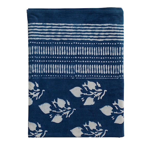 Indigo bordsduk från svenska Chamois är en vacker bomullsduk i ett härligt mönster. Handtryckt duk färgad med indigofärg. Indigo är ett naturligt pigment som ger en distinkt blå färg. Det har använts för att färga tyg i tusentals år. Perfekta duken för midsommardukningen eller långbordet på festen!