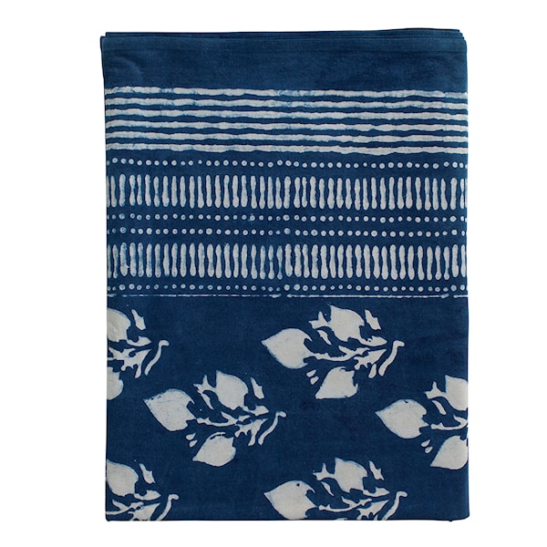 Indigo bordsduk från svenska Chamois är en vacker bomullsduk i ett härligt mönster. Handtryckt duk färgad med indigofärg. Indigo är ett naturligt pigment som ger en distinkt blå färg. Det har använts för att färga tyg i tusentals år. Detta är en lång variant på 150x350 cm, perfekta duken för midsommardukningen eller långbordet på festen!