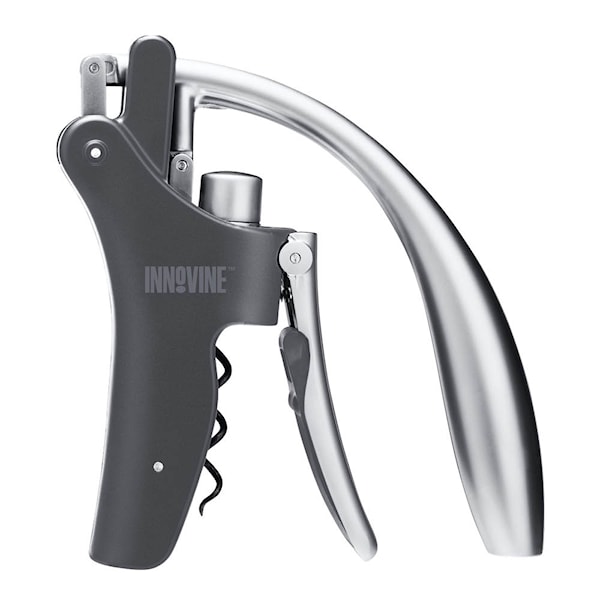 Innovine vertikal korkskruv i svart och silver erbjuder effektiv korkborttagning med professionell precision. Den vertikala spaken och girkopplade non-stick-spiralen säkerställer att korken tas bort i två jämna steg – utan att skada eller smula.