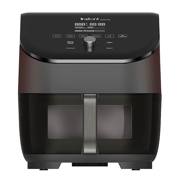 Upptäck Instant Vortex Plus ClearCook airfryer 5,7L – en kombination av kapacitet och enkelhet. Den rymliga korgen på 5,7 liter rymmer upp till 6 portioner, perfekt för både små och stora rätter. Få krispig och gyllene mat med den goda smaken av traditionell fritering, men med upp till 95 % mindre olja.