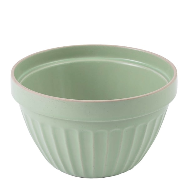 Big Love puddingskål 1,5 L i grönt stengods från Jamie Oliver kombinerar funktionalitet och rustik charm i en och samma design. Med sin djupa form och vackra gröna glasyr med naturliga prickar är denna stengodsskål perfekt för allt från att blanda kaksmet och röra ihop desserter till att servera hemlagade puddingar. Den räfflade, glaserade ytan och den råa stengodskanten ger skålen ett genuint uttryck som passar in i alla typer av kök.