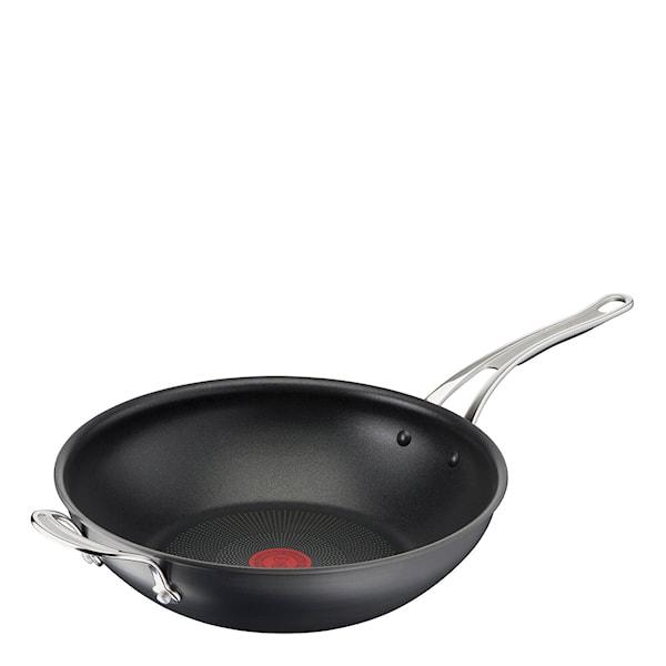 I mitten av pannan finns Tefals välkända ThermoSpot – den röda värmeindikatorn som visar när pannan uppnått optimal temperatur. Jamie Oliver Cook’s Classic Wokpanna fungerar på alla typer av spisar, inklusive induktion, och kan även användas i ugn.