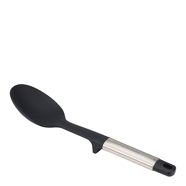 Tillverkad av slitstarkt silikon som tål temperaturer upp till 210˚C, är skeden säker att använda med non-stick-kärl utan att skada beläggningen. Den är diskmaskinssäker för enkel rengöring. Det rekommenderas att undvika att lämna skeden i heta kokkärl under matlagning. För att bevara skedens utseende bör man också undvika användning med starka färgämnen som gurkmeja för att förebygga missfärgning.