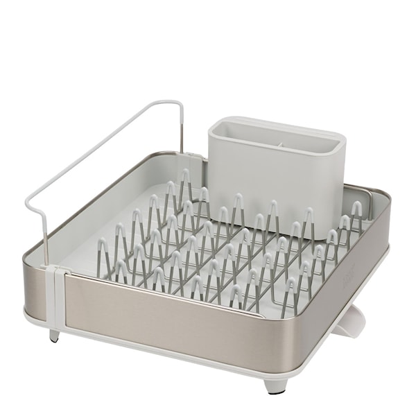 Extend Steel diskställ från Joseph Joseph är en flexibel och stilren lösning för att organisera din disk. Detta smarta diskställ har en justerbar tvådelad bas som enkelt kan skjutas ut för att öka dräneringsytan vid behov, perfekt när du har mycket disk. De belagda stålpinnarna har repfria toppar som håller porslinet säkert på plats, medan spåren i basen effektivt leder bort vatten och förhindrar att det samlas i uppochnervända koppar och glas.