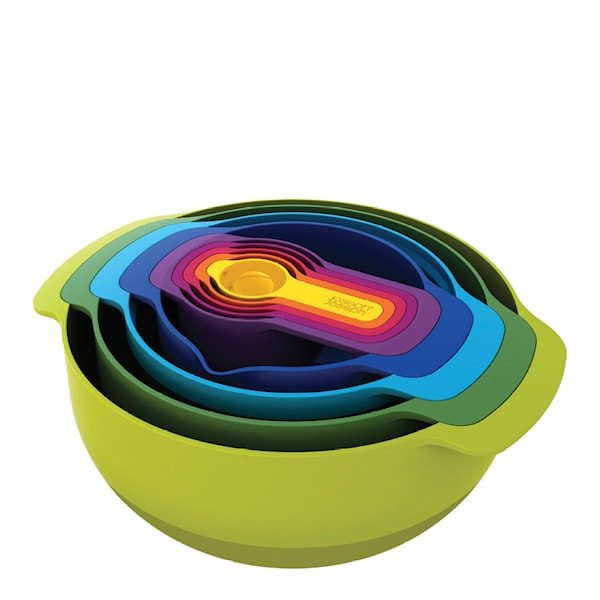 Joseph Joseph Skål- och Måttset Nest Plus 9 är ett praktiskt skålsetet i 9 delar som innehåller några av de mest användbara redskapen till ditt kök.