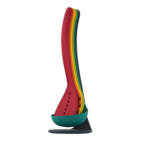 Nest Redskapsset från Joseph Joseph med magnetiska handtag som håller ihop redskapen säkert i ett kompakt och platsbesparande stativ. Perfekt att ha stående på köksbänken för att alltid ha dina favoritredskap nära till hands. Redskapen kan diskas i diskmaskin och är BPA-fria.