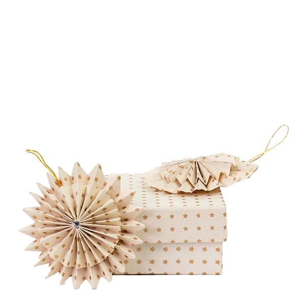 Julhänge Stjärna 7 cm 2-pack Vit/Guld är gjort av papper och kommer att göra sig fint i julgranen och ett tillskott till juldekorationen.