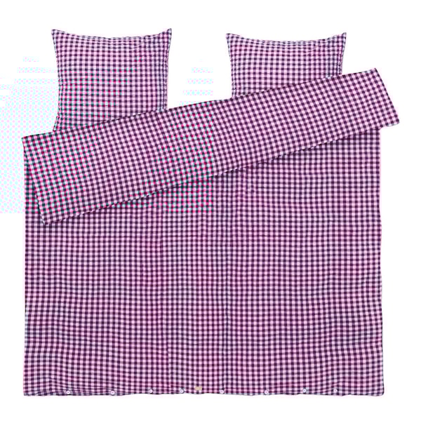JUNA Bæk&Bølge påslakanset i fuchsia/mint kombinerar retrokänsla med modern komfort – tillverkat i 100% ekologisk bomull och GOTS-certifierat för trygghet i varje steg. Den karakteristiska vävningen ger en luftig och mjuk struktur som känns sval och behaglig mot huden – perfekt för en god natts sömn.