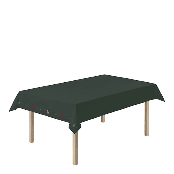 Skapa en enhetlig julstämning runt middagsbordet med Christmas Fable-duken från Juna i djup julgrön nyans. Med sina 150x270 cm täcker den elegant större bord, och de broderade julmotiven längs sidorna ser till att detaljerna förblir synliga även när bordet fylls med fat, glas och säsongens favoriter. De charmiga broderierna – med inslag av renar, julgranar och stjärnor – ger duken ett nostalgiskt men samtidigt lekfullt uttryck.