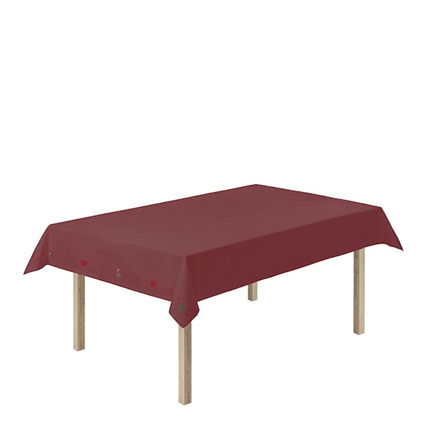 Christmas Fable duk från Juna är själva sinnebilden av ett stämningsfullt julbord. I en djup och varm julröd nyans är den dekorerad med en rad charmiga broderade julmotiv längs kanterna – placerade så att detaljerna fortsätter att synas även när mitten av bordet fylls med mat, kakor och allt som hör högtiden till. Motivens placering är noggrant genomtänkt för att bidra till en helhet, och skapar en känsla av omsorgsfull juldukning.