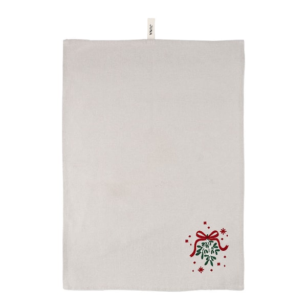 Christmas Fable-kökshandduken från Juna ger köket ett elegant lyft under julsäsongen. Den klassiska julfärgen kombineras med ett vackert broderat motiv av seriens karaktäristiska julgranar och små stjärnor, stilfullt placerat nere i högra hörnet. Resultatet är en handduk som är lika praktisk i användning som den är dekorativ där den hänger framme.