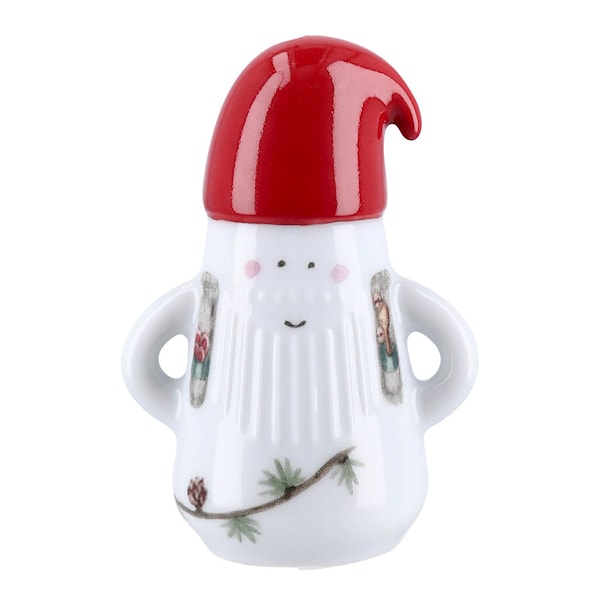 Jultomten från Kählers Hammershøi Christmas-serie är en 9 cm hög figur i vitt porslin med ikoniska rillor. Tomtefar har julens alla symboler med sig: en trumpet, pepparkakor, träslev och en klassisk röd tomteluva med böj.